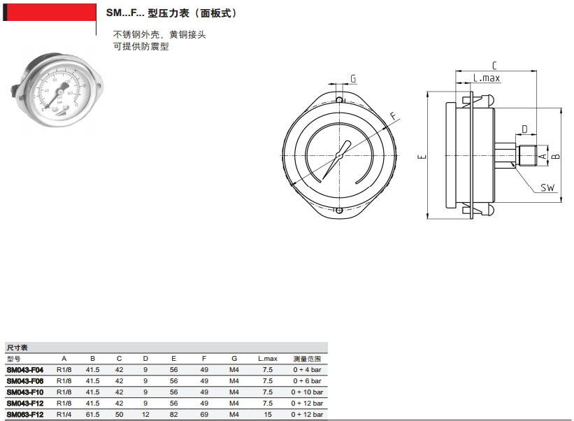 SM043-R08,SM043-P06,SM063-P12,SM043-F12,SM053-P06,camozzi壓力表