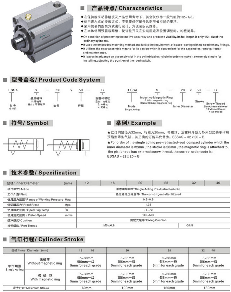 ESSAS-12*30-B,ESSAS-16*30-B,ESSAS-20*30-B,ESSAS-25*30-B,ESSAS-32*30-B,ESSAS-40*30-B,