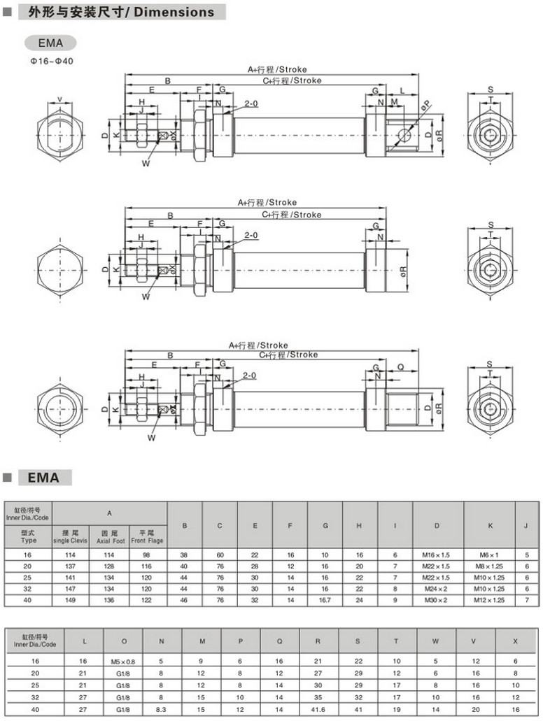 EMA-CM16*25,EMA-CM20*50,EMA-CM32*80,EMA-U25*50,EMA-U40*100