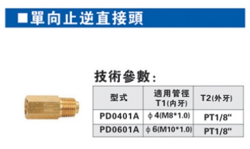 PD0401A,PD0601A,單向止逆直接頭