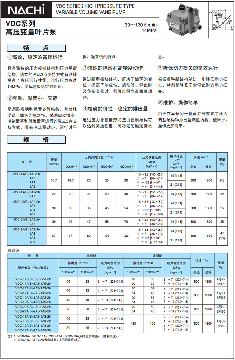 VDC-1A,VDC-1B,VDC-11A,VDC-11B,VDC-12A,VDC-12B,VDC-22A,VDC-22B,VDC-13A,VDC-13B,NACHI高壓變量葉片泵 |