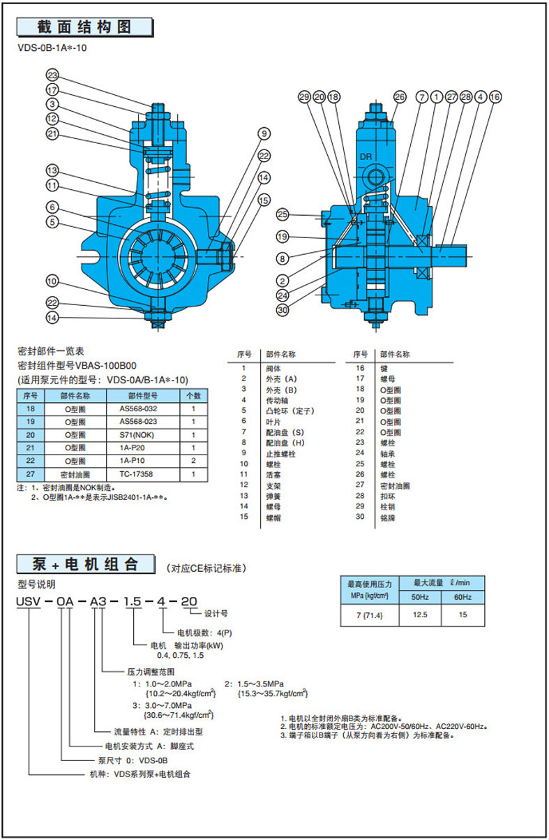 USV-0A-A1,USV-0A-A2,USV-0A-A3,USV-0A-A1-0.4-4-20,USV-0A-A3-0.75-4-20,NACHI泵+電機(jī)組合