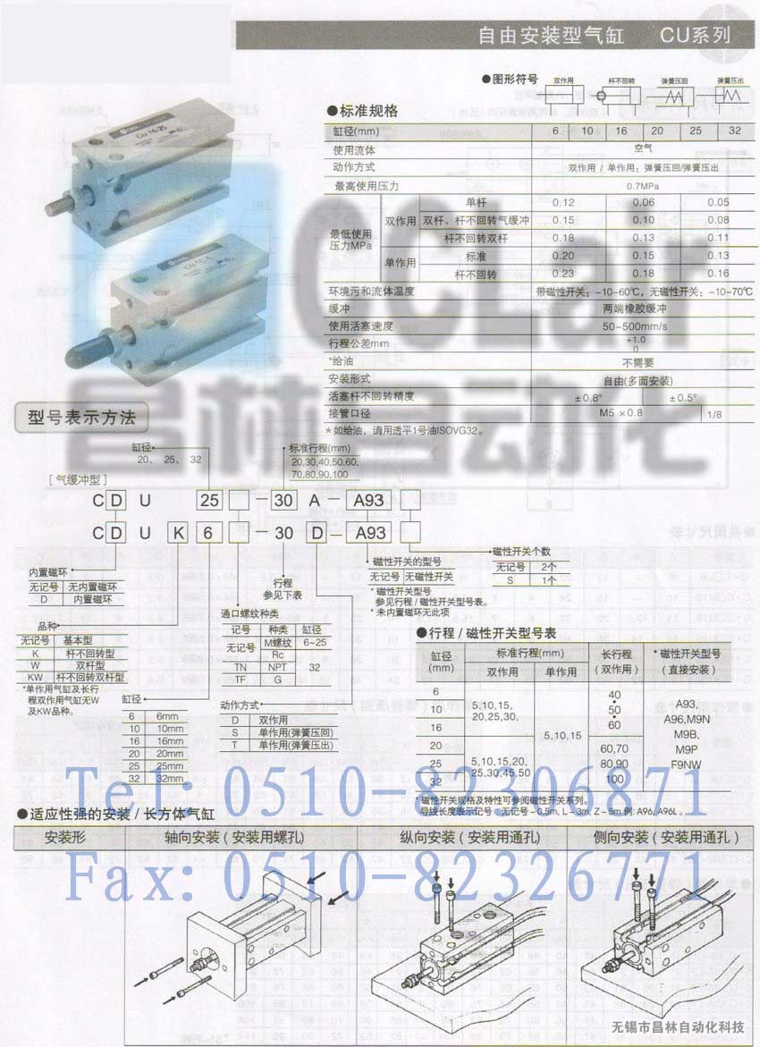 CDUW6-20D,CDUW6-25D,CDUW6-30D,自由安裝型氣缸