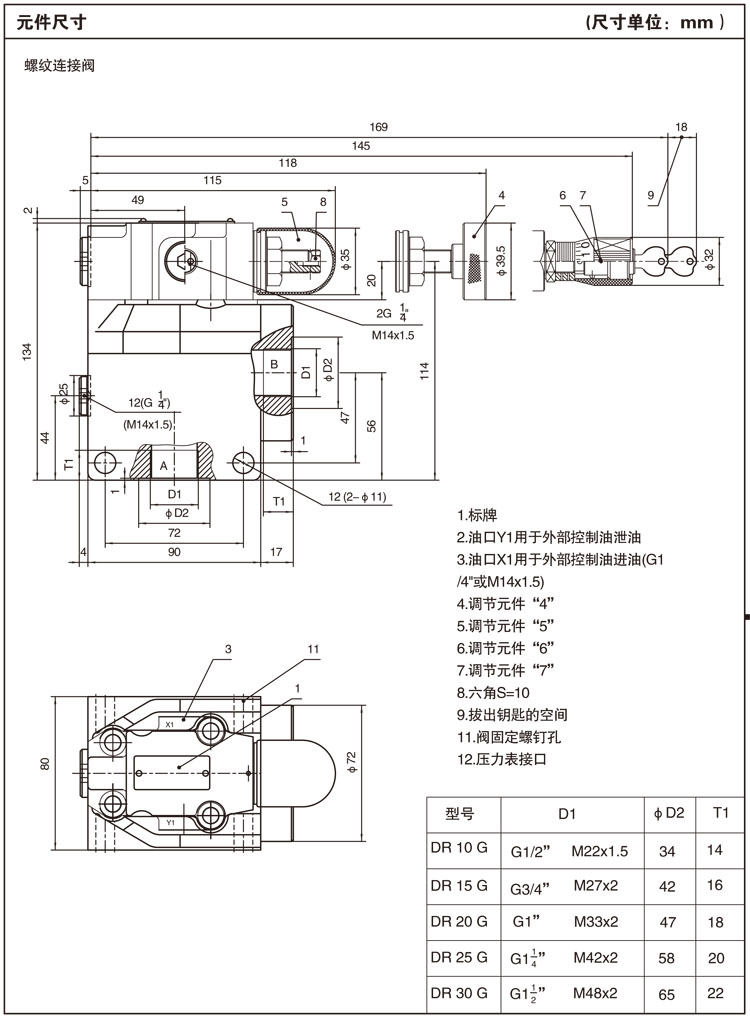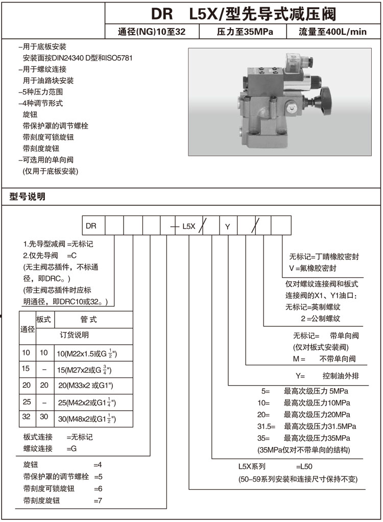 DR10,DR20,DR30,DR10G,DR15G,DR20G,DR25G,DR30G,DR104-L5X/5,先導(dǎo)式減壓閥