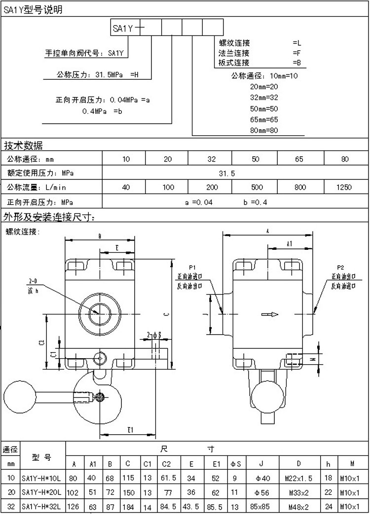 SDFY-L10H,SDFY-L20H,SDFY-L32H,SDFY-L50H,SDFY-L65H,SDFY-L80H,手控單向閥