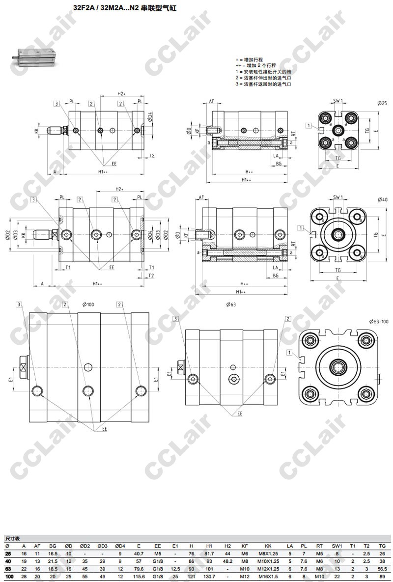 32M2A025A050N2,32F2A025A050N2,32M2A040A050N3,32F2A040A050N3,32M2A040A050N2,camozzi氣缸