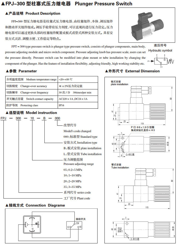 FPJ-300-05,FPJ-300-10,FPJ-300-20,FPJ-300-35,柱塞式壓力繼電器