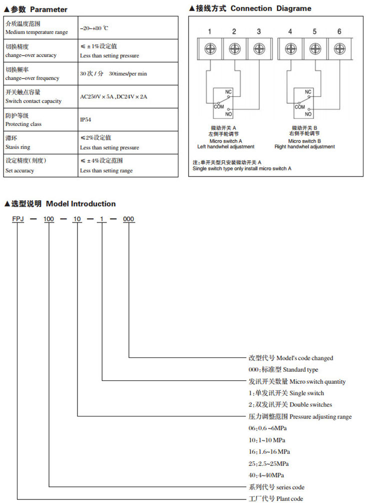 FPJ-100-06,FPJ-100-10,FPJ-100-16,FPJ-100-25,FPJ-100-40,彈簧管式壓力繼電器