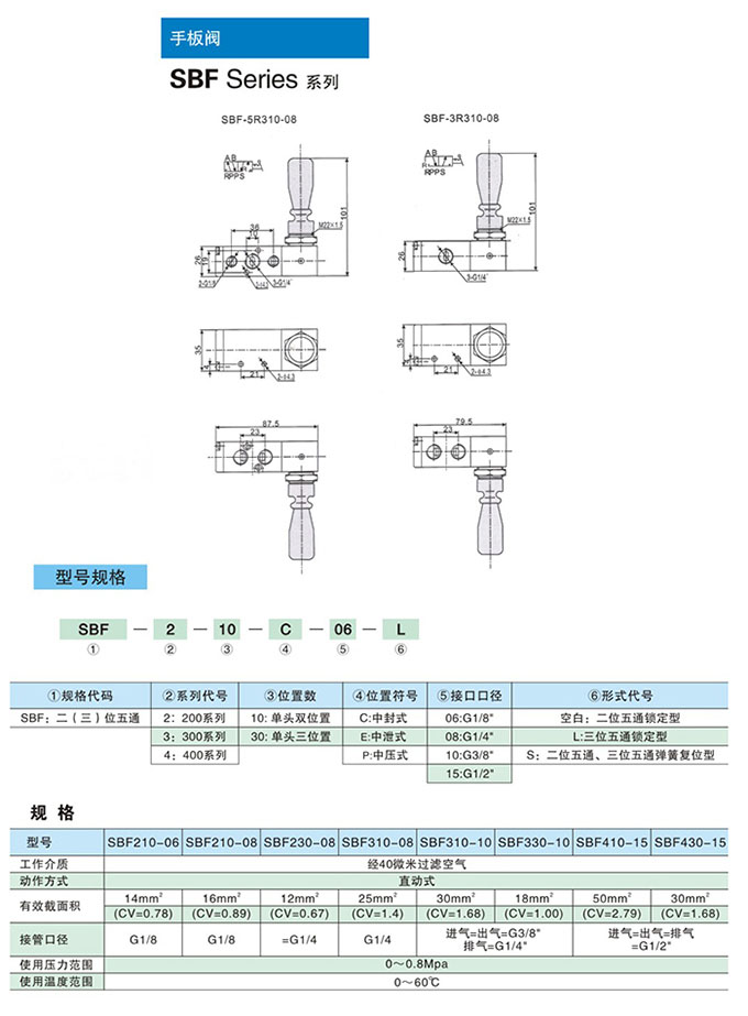 SBF210-06,SBF210-08,SBF230-08,SBF310-08,SBF310-10,SBF330-10,SBF410-15,SBF430-15,手板閥 |
