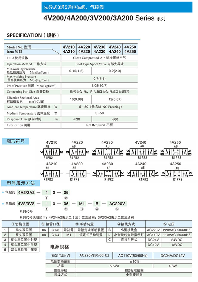 4A210-06,4A220-06,4A230-06,4A240-06,4A250-06,4A210-08,4A220-08,先導(dǎo)式3通5通氣控閥 |