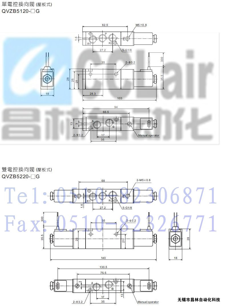 QVZB5520-5G-01,QVZB5520-5D-01,QVZB5520-6G-01,QVZB5520-6D-01,二位/三位五通電控?fù)Q向閥