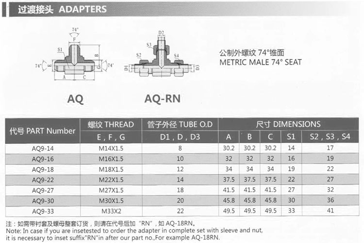 AQ9-14,AQ9-16,AQ9-18,AQ9-22,AQ9-27,AQ9-30,AQ9-33,過渡接頭