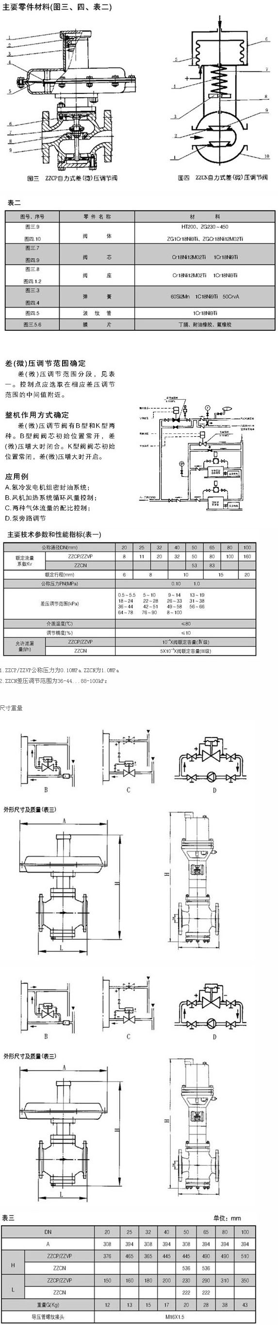 ZZC和ZZV自力式差(微)壓調(diào)節(jié)閥是一種不需要外加能源的執(zhí)行器產(chǎn)品.可用于公稱壓力PN01,PN10.差(微)壓均可分段調(diào)節(jié).從50mm .W.C至0.1MPa.其用途十分廣泛,可用于工業(yè)燃燒系統(tǒng),控制兩種物料,如煤氣,空氣流量配比,以達(dá)理想燃燒.用于氫冷發(fā)電機(jī)組密封油系封.當(dāng)差壓閥的低壓端通大氣即為微壓閥(差壓閥負(fù)壓,端壓,力為零).