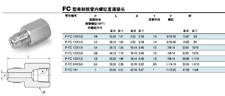 P-FC-1/4*1/8,P-FC-1/4*1/4,P-FC-1/2*1/4,P-FC-1/2*3/8,P-FC-1/2*1/2