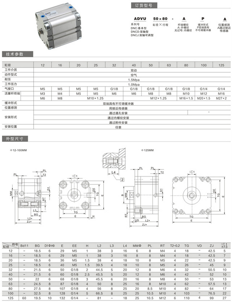 ADVU63*80-APA,ADVU80*80-APA,ADVU100*80-APA,ADVU125*80-APA,