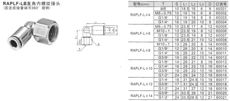 RAPLF-L4,RAPLF-L6,RAPLF-L8,RAPLF-L10,RAPLF-L12,RAPLF-L14,直角內(nèi)螺紋接頭