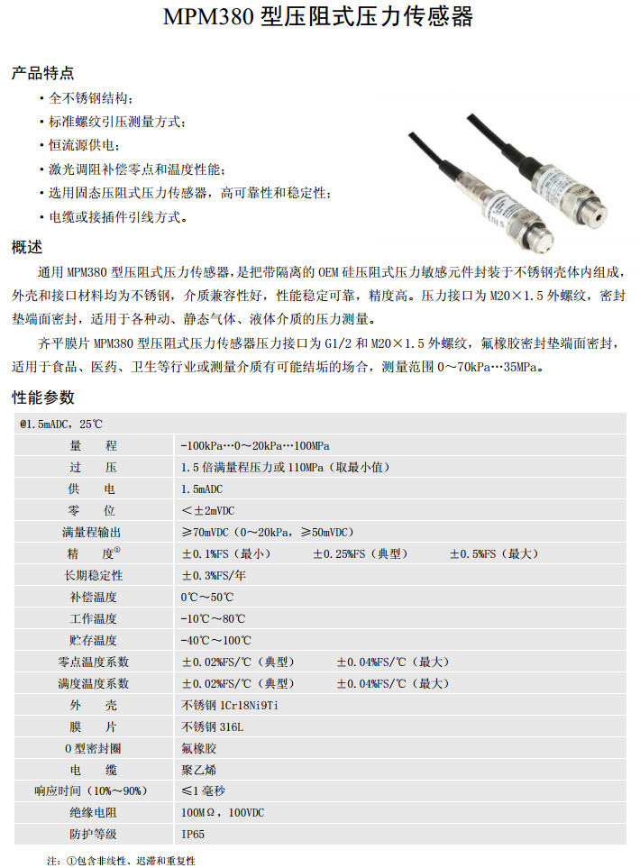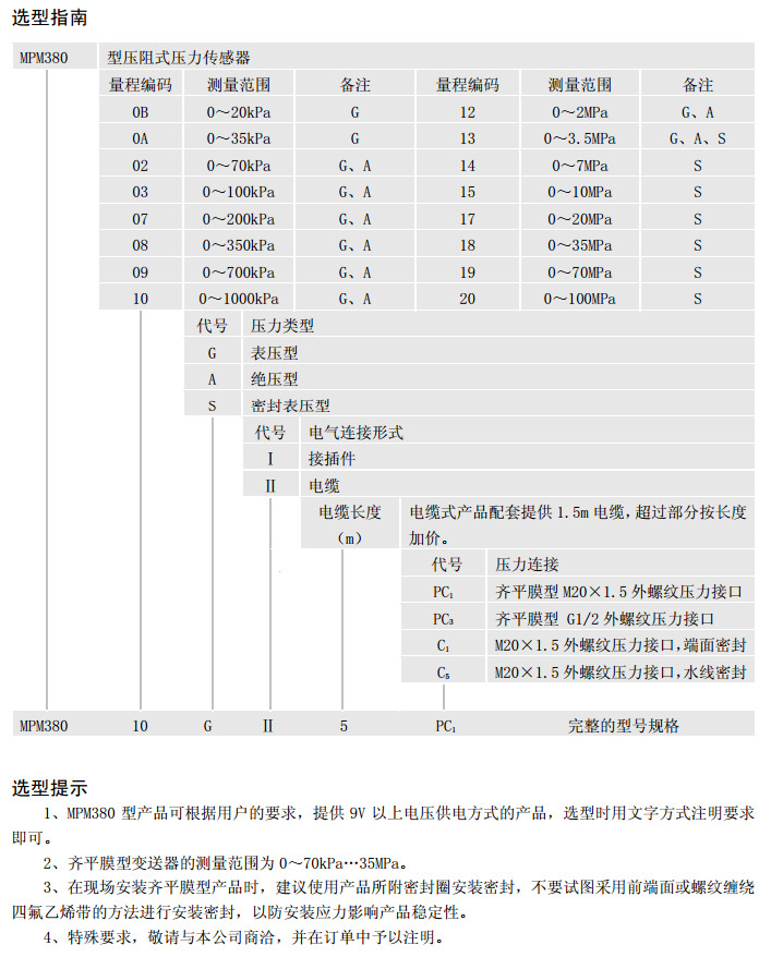 MPM380-OBG,MPM380-OAG,MPM380-02A,MPM380-03A,MPM380-07S,MPM380-08S,壓阻式壓力傳感器 |