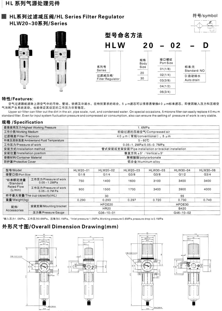 HLW20-01,HLW20-02,HLW20-03,HLW30-03,HLW30-04,HLW30-06,過濾減壓閥 |
