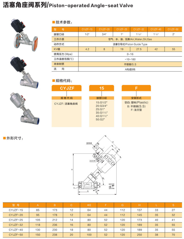 CYJZF-15,CYJZF-20,CYJZF-25,CYJZF-32,CYJZF-40,CYJZF-50,活塞角座閥