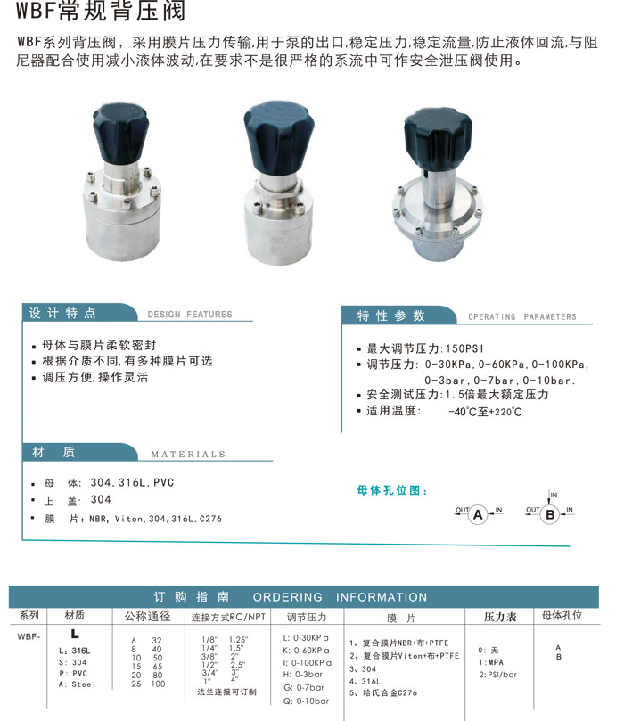 WBF-A6,WBF-A8,WBF-A10,WBF-A15,WBF-A20,WBF-A25,WBF-A32,WBF-A40,WBF-A50,WBF-A65,WBF-A80,WBF-A100,背壓閥 |