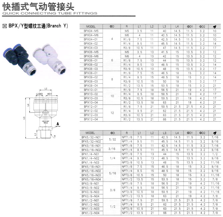 BPX04,BPX06,BPX08,BPX10,BPX12,BPX5/32,BPX3/16,BPX1/4,BPX3/8,BPX1/2,BPX04-M5,快插式氣動管接頭