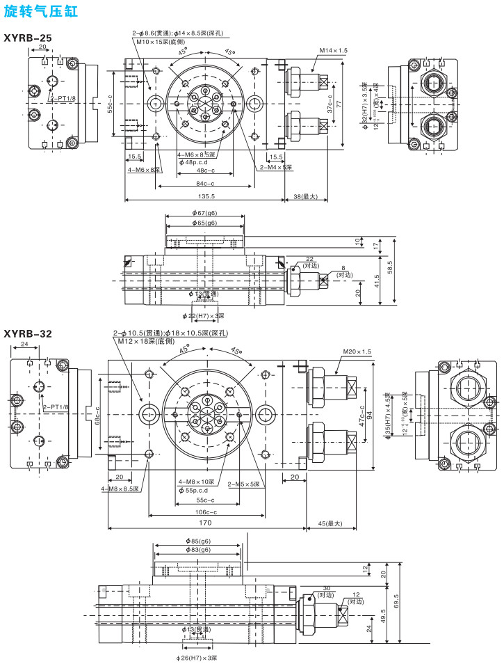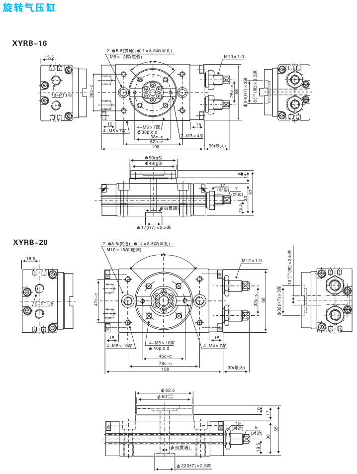XYRB-16,XYRB-20,XYRB-25,XYRB-32,XYRB-16RD-FR-NPT,擺動氣缸 |