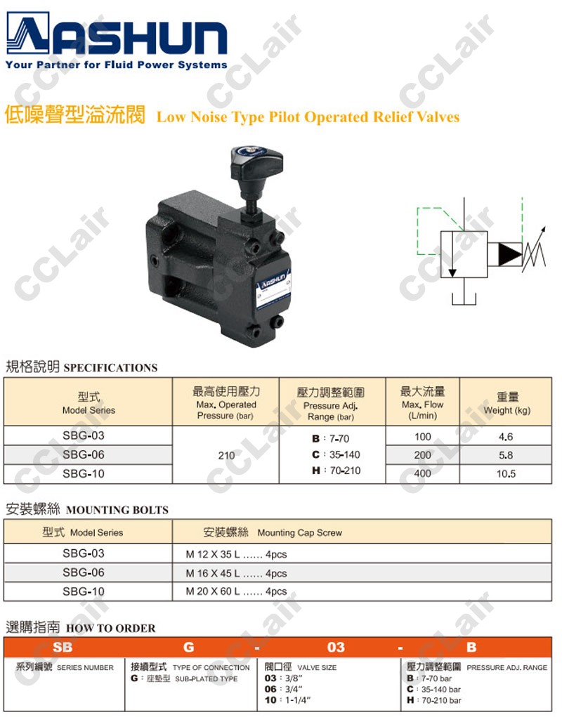 SBG-03,SBG-06,SBG-10,SBG-03-C,SBG-06-B,SBG-10-H,ASHUN油順低噪音溢流閥