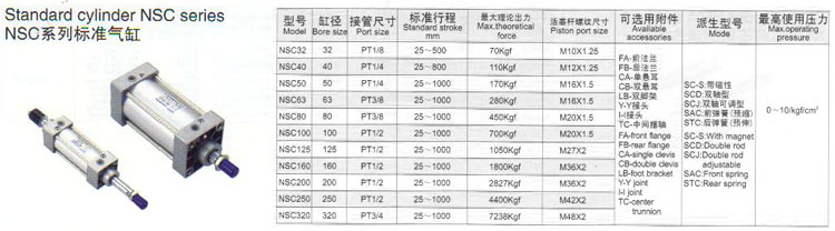 NSC32,NSC40,NSC50,NSC63,NSC80,NSC100,NSC125,NSC160,NSC200,NSC250,NSC320,標準氣缸