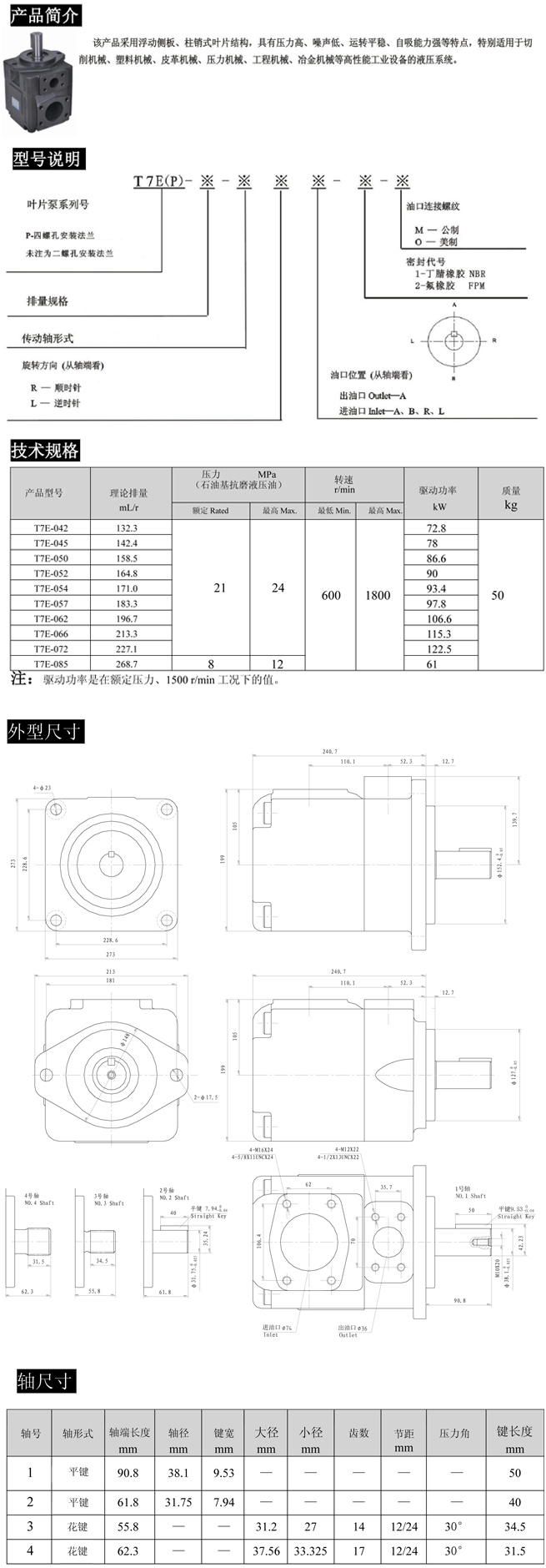 T7E-042,T7E-045,T7E-050,T7E-052,T7E-054,T7E-057,T7E-062,T7E-066,T7E-072,T7E-085,高壓柱銷式葉片泵