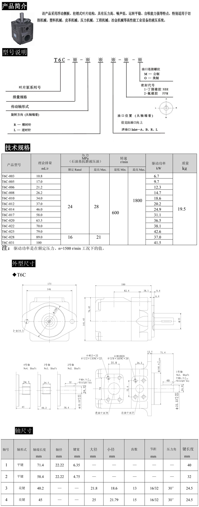T6C-003,T6C-005,T6C-006,T6C-008,T6C-010,T6C-012,T6C-014,T6C-017,T6C-020,高壓柱銷式葉片泵