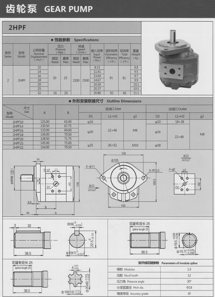 2HPF10,2HPF14,2HPF16,2HPF18,2HPF20,2HPF25,2HPF32,齒輪泵