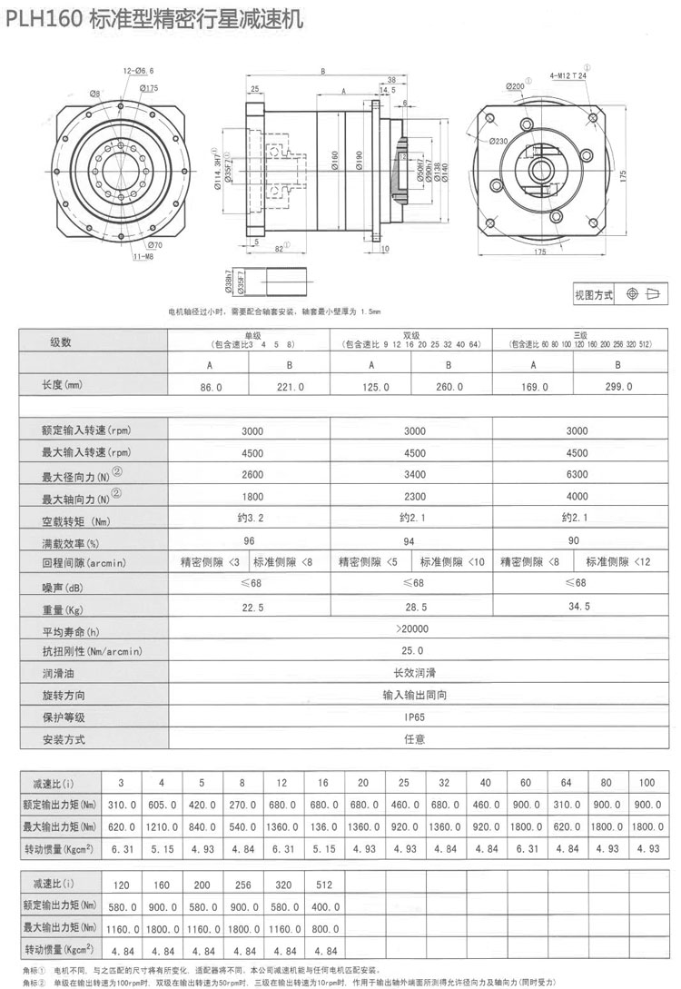 PLH160-L1-3-S2-P2,PLH160-L2-12-S1-P2,PLH160-L3-80-K-P2,精密行星減速機