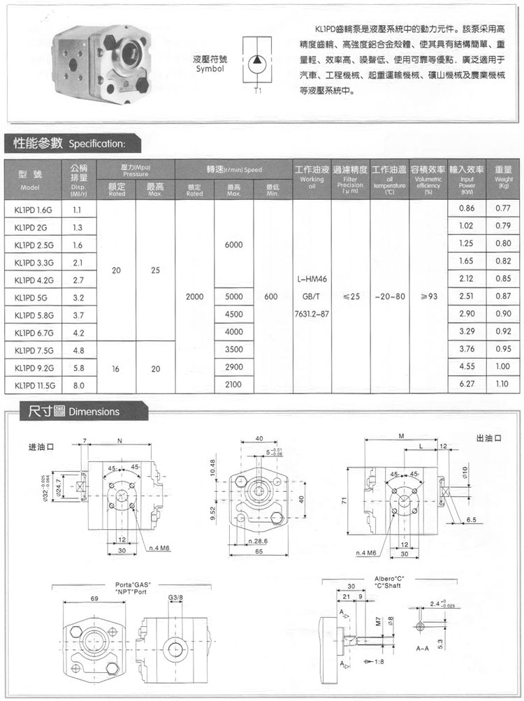 KL1PD1.6G,KL1PD2G,KL1PD2.5G,KL1PD3.3G,KL1PD4.2G,KL1PD5G,KL1PD5.8G,高壓齒輪油泵