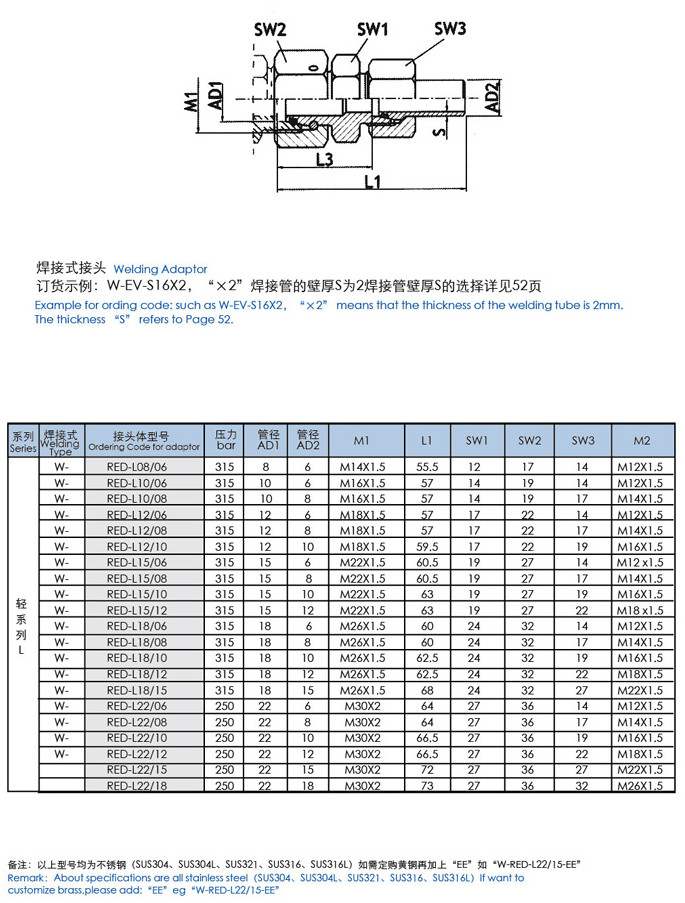 W-RED-L08/06,W-RED-L10,W-RED-L12,W-RED-L18,W-RED-L22,W-RED-L15,直通焊接式接頭