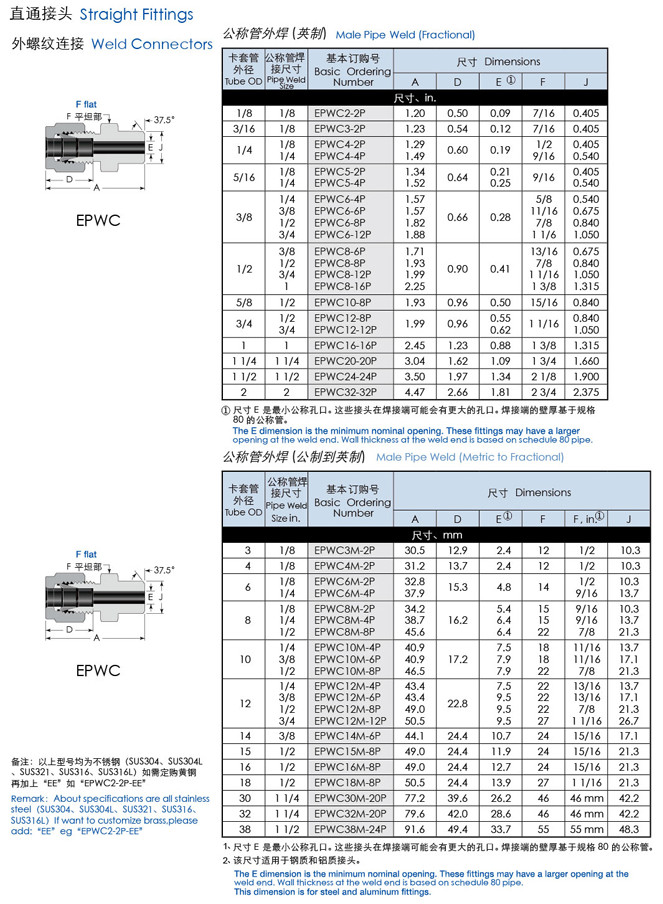 EPWC2,EPWC3,EPWC4,EPWC5,EPWC6,EPWC8,EPWC10,EPWC12,EPWC16,EPWC20,直通焊接頭