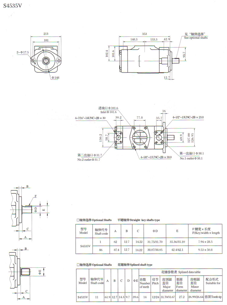 S2520V10A,S4520V42A,S4525V45A,S2520V15A,4525V57A,S4535V60A,葉片泵
