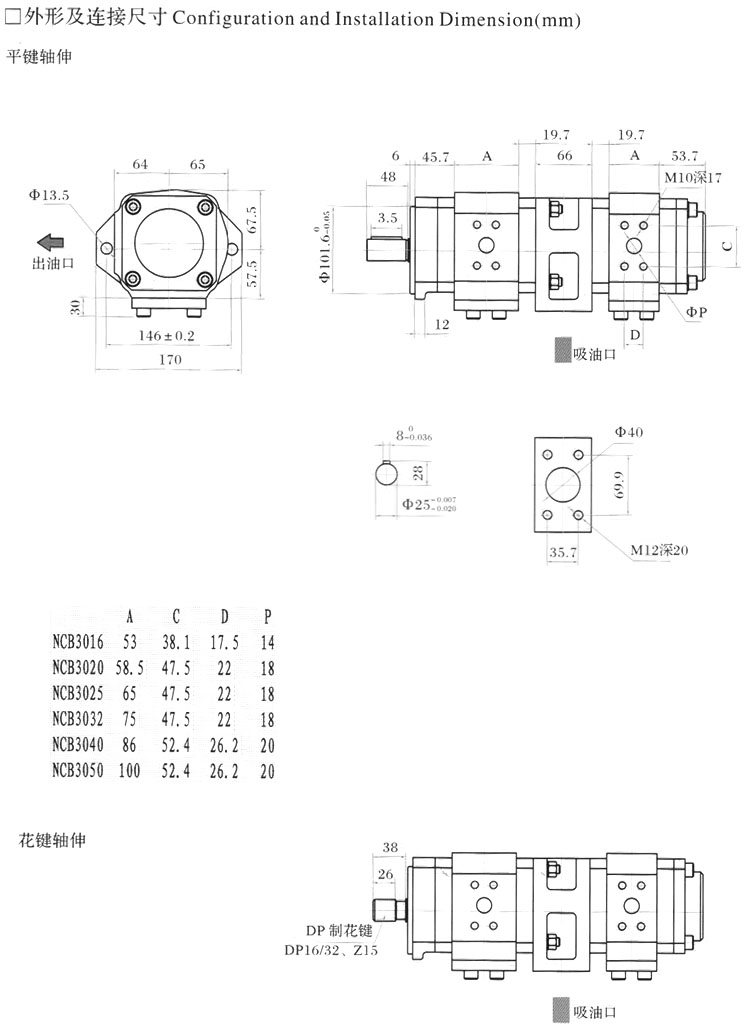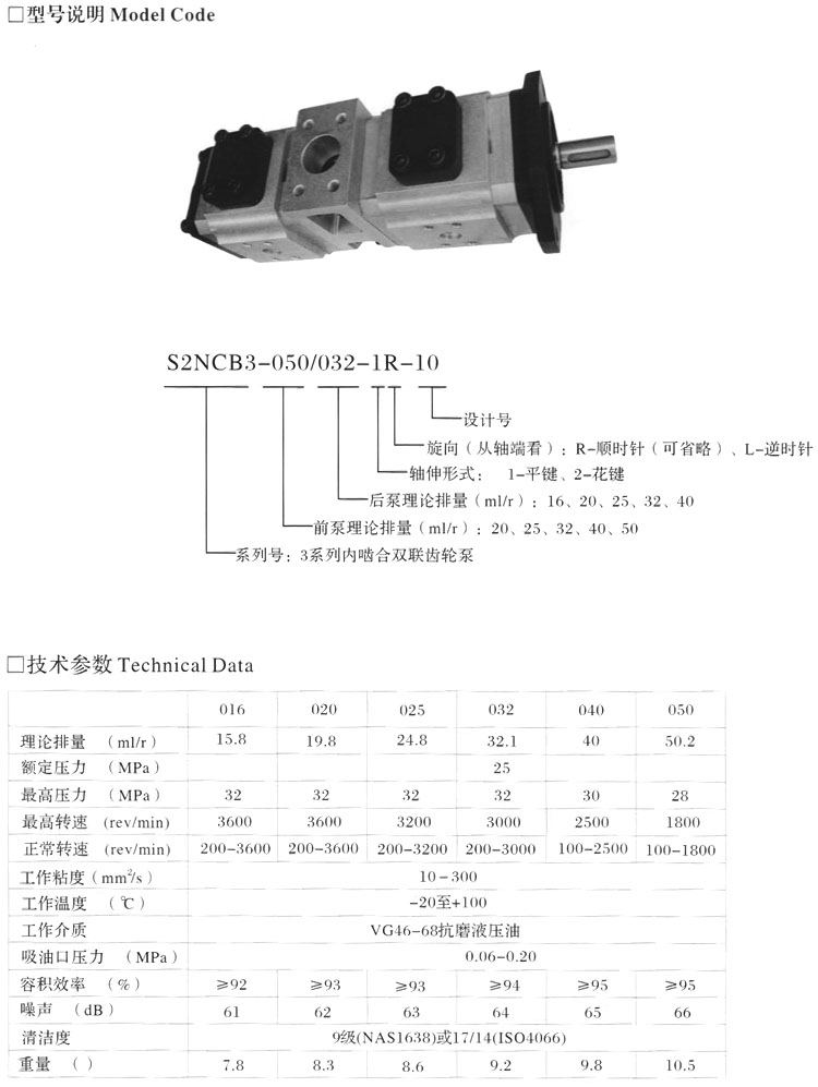 S2NCB3-020/016-1R-10,S2NCB3-025/040-1R-10,S2NCB3-032/020-1L-10,內(nèi)嚙合雙聯(lián)齒輪泵