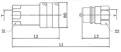 | 昌林液壓 | 國際標準 | L1 | L2 | L3 | ØD | S1 | S2 | T | 最大工作壓力 | 母接頭編號 | 公接頭編號 |