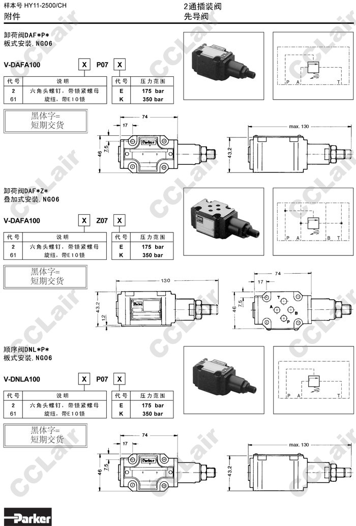 V-DAFA1002P07E,V-DAFA1002P07K,V-DAFA10061P07E,V-DAFA10061P07K,Parker2通插裝卸荷閥 |