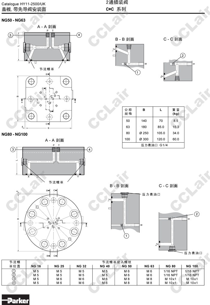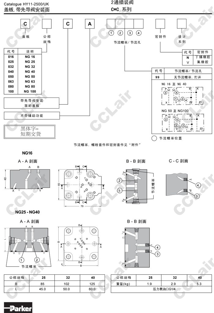 C016CA99N,C025CA99N,C032CA99N,C040CA99N,C050CA99N,C063CA99N,C080CA99N,C100CA99N,Parker2通插裝閥蓋板