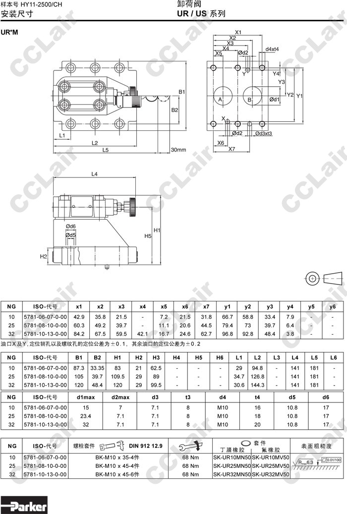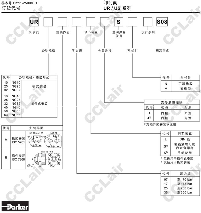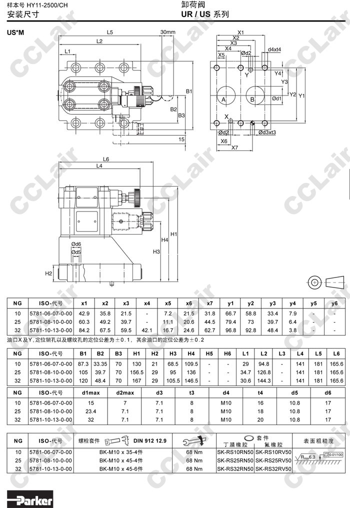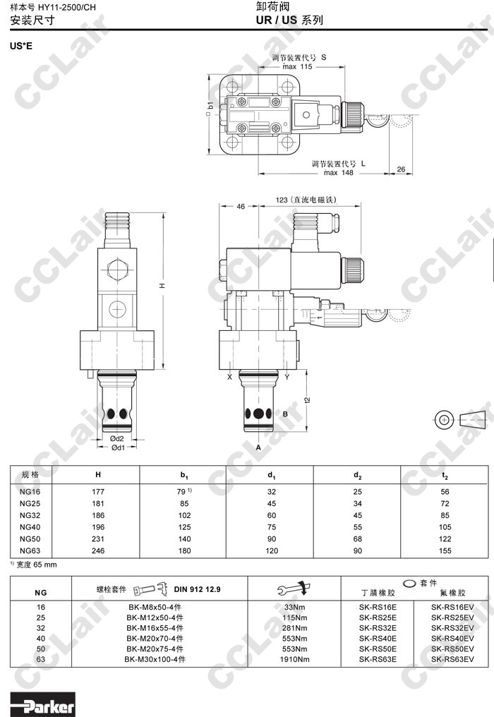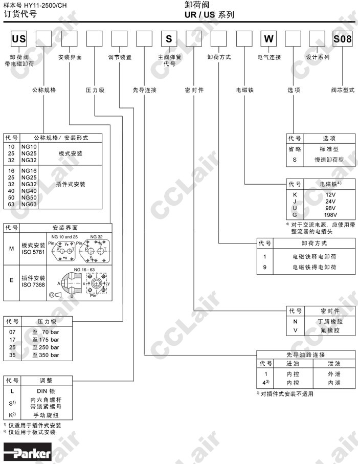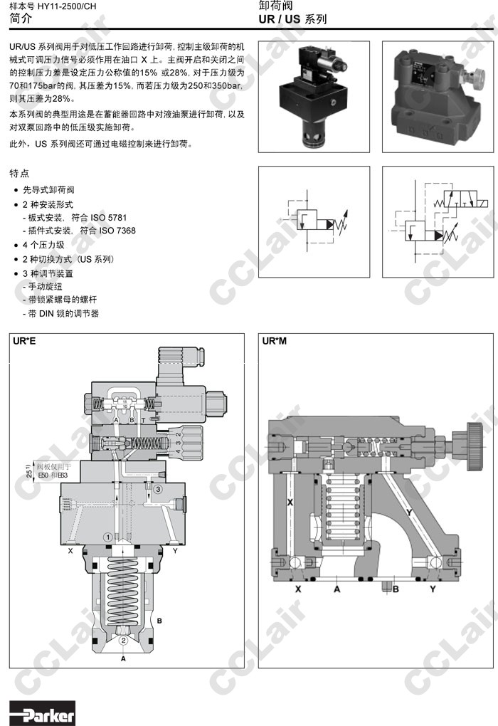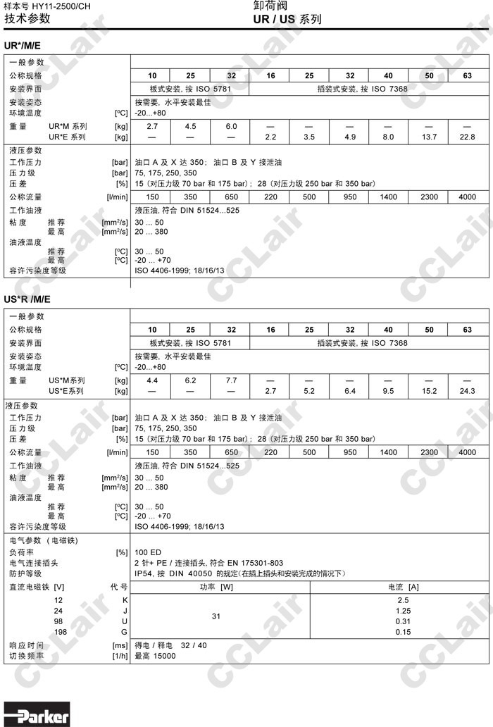 US10M,US25M,US32M,US16E,US25E,US32E,US40E,US50E,US63E,US10M07L1SN,Parker卸荷閥 |