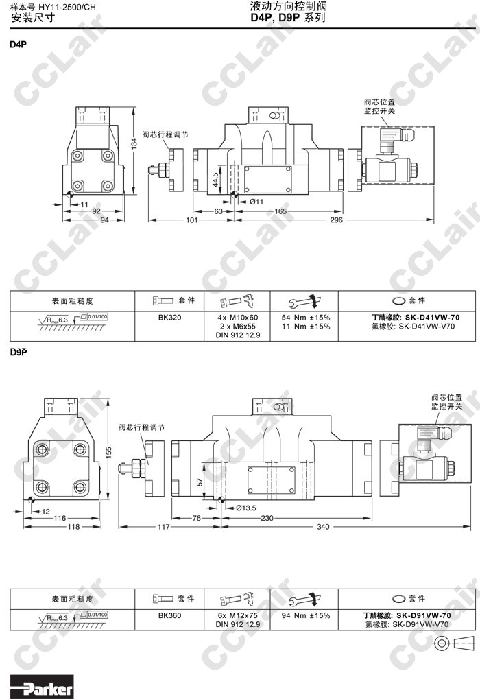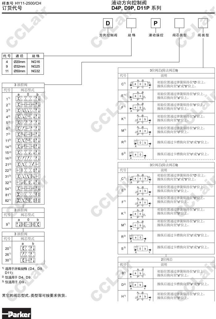 D4P,D9P,D11P,D4P1C2N,D9P1C2N,D11P1E2N,D4P1C2V,D9P1C2V,D11P1E2V,Parker液動(dòng)方向控制閥