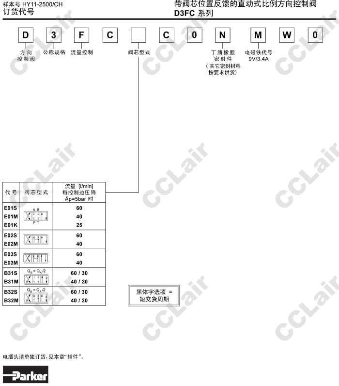D3FCE01,D3FCE02,D3FCE03,D3FCB31,D3FCB32,D3FCE01SC0NMW0,D3FCE02SC0NMW0,Parker直動式比例方向控制閥 |