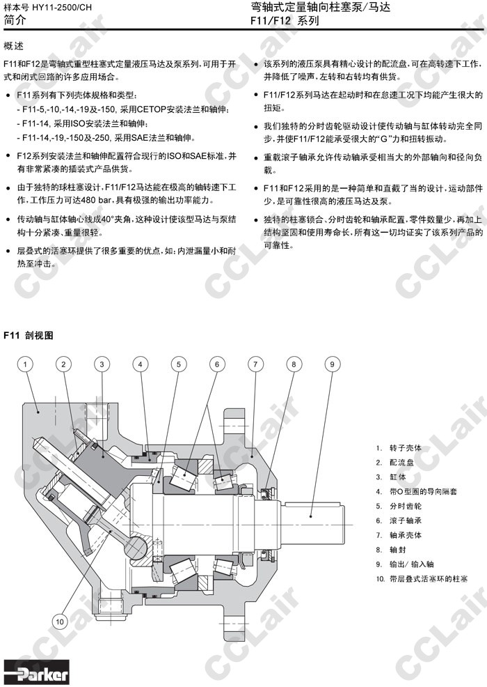 F12-30-L,F12-40-L,F12-50-L,F12-60-L,F12-80-L,F12-110-L,F12-110-LF-IV-K,Parker彎軸式定量軸向柱塞泵