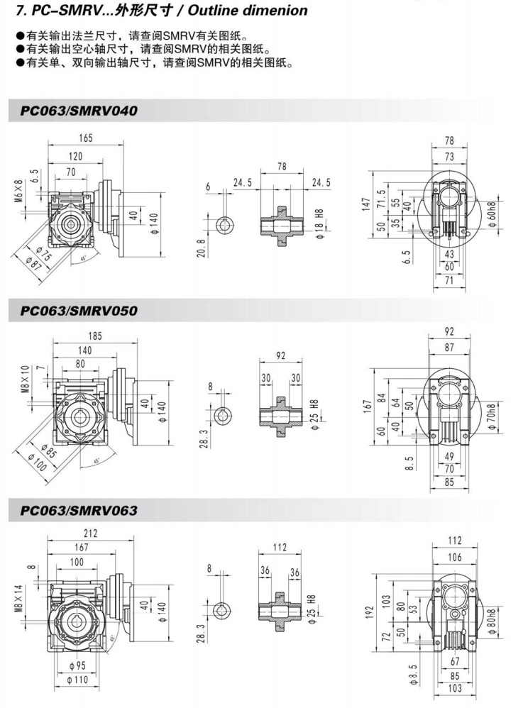 PC063-SMRV040,PC071-SMRV090,PC080-SMRV130,PC090-SMRV110,斜齒蝸輪減速器