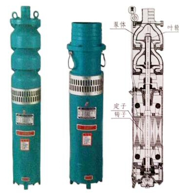 QS型潛水泵由水泵、電機(jī)兩大部分組成,水泵位于電泵上部,為離心式結(jié)構(gòu)。電動機(jī)位于電泵下部,為充水式三相異步電動機(jī)。充水式電動機(jī)定子繞組和鐵心直接浸在水中,冷卻效果好,不產(chǎn)生污染,從而突破了其他電泵工作時(shí)“O"形密封圈,機(jī)械密封件等滲水到電機(jī)腔內(nèi)的弊端,大大提高了電泵的使用效率。