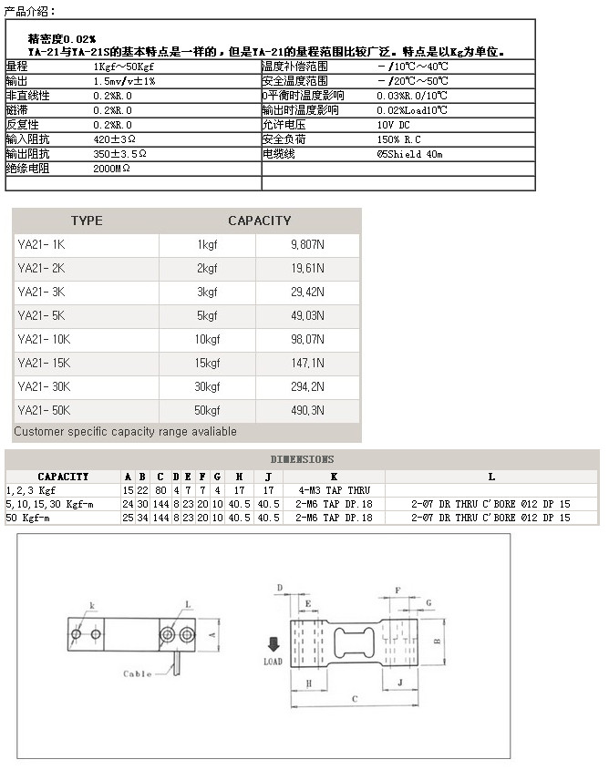 YA21-1K,YA21-2K,YA21-3K,YA21-5K,YA21-10K,YA21-15K,setech稱重傳感器
