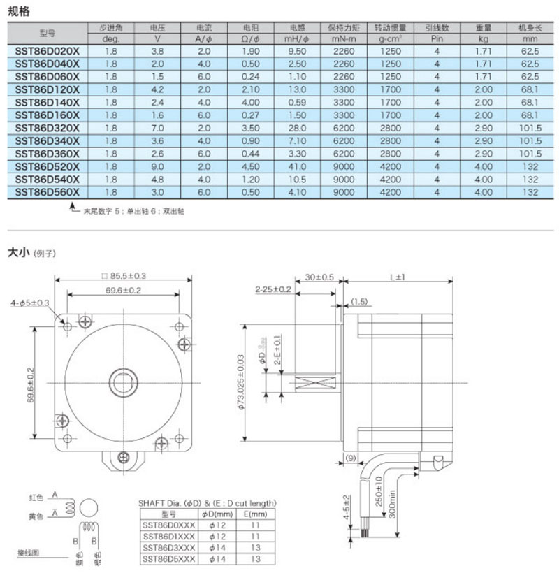 SST86D020X,SST86D040X,SST86D060X,SST86D120X,SST86D140X,兩相混合步進(jìn)馬達(dá)