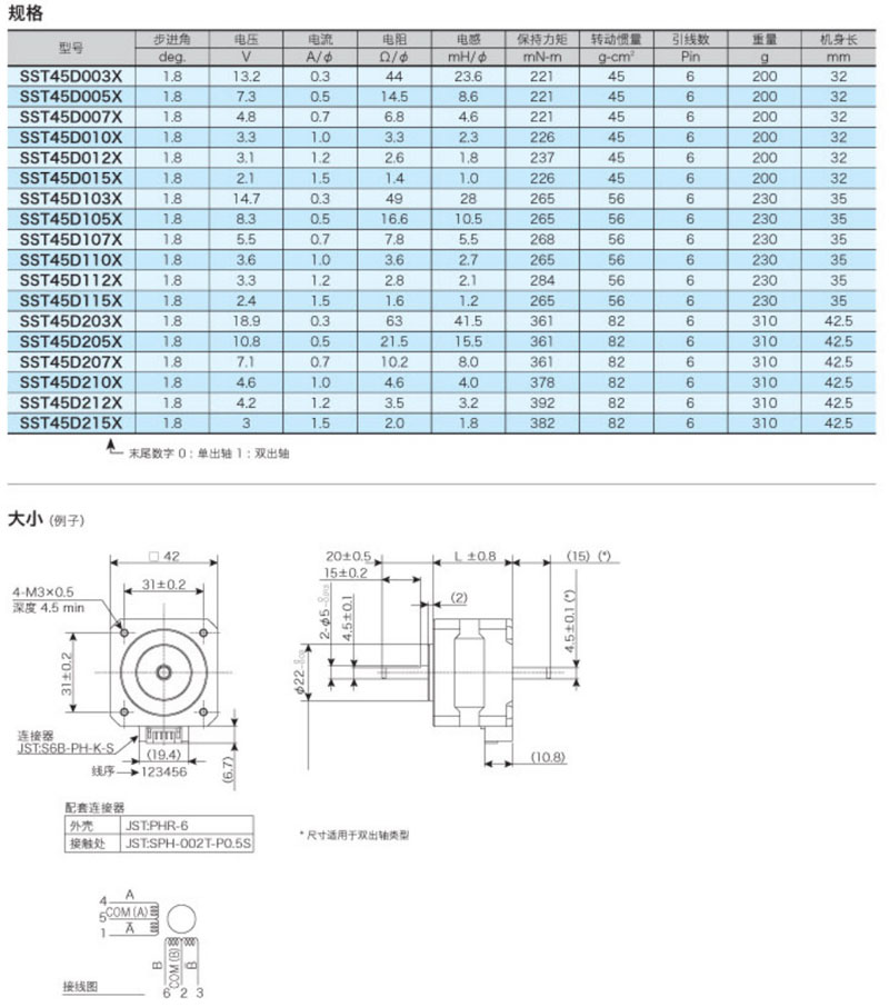 SST45D003X,SST45D005X,SST45D007X,SST45D010X,SST45D015X,兩相混合步進(jìn)馬達(dá)