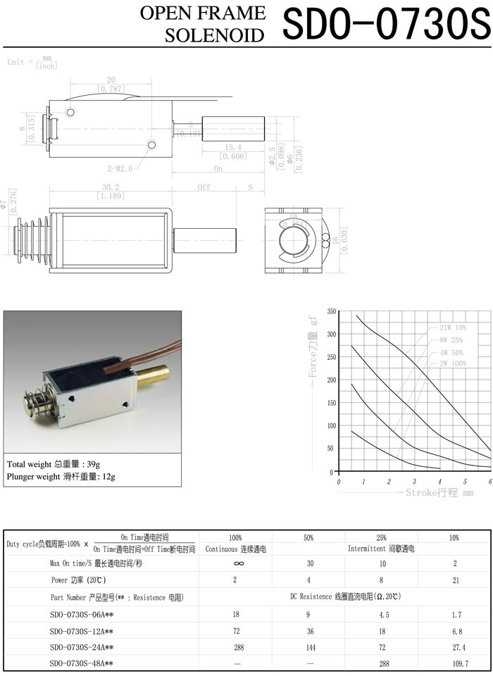 SDO-0730S-06A,SDO-0730S-12A,SDO-0730S-24A,SDO-0730S-48A,直動(dòng)電磁鐵